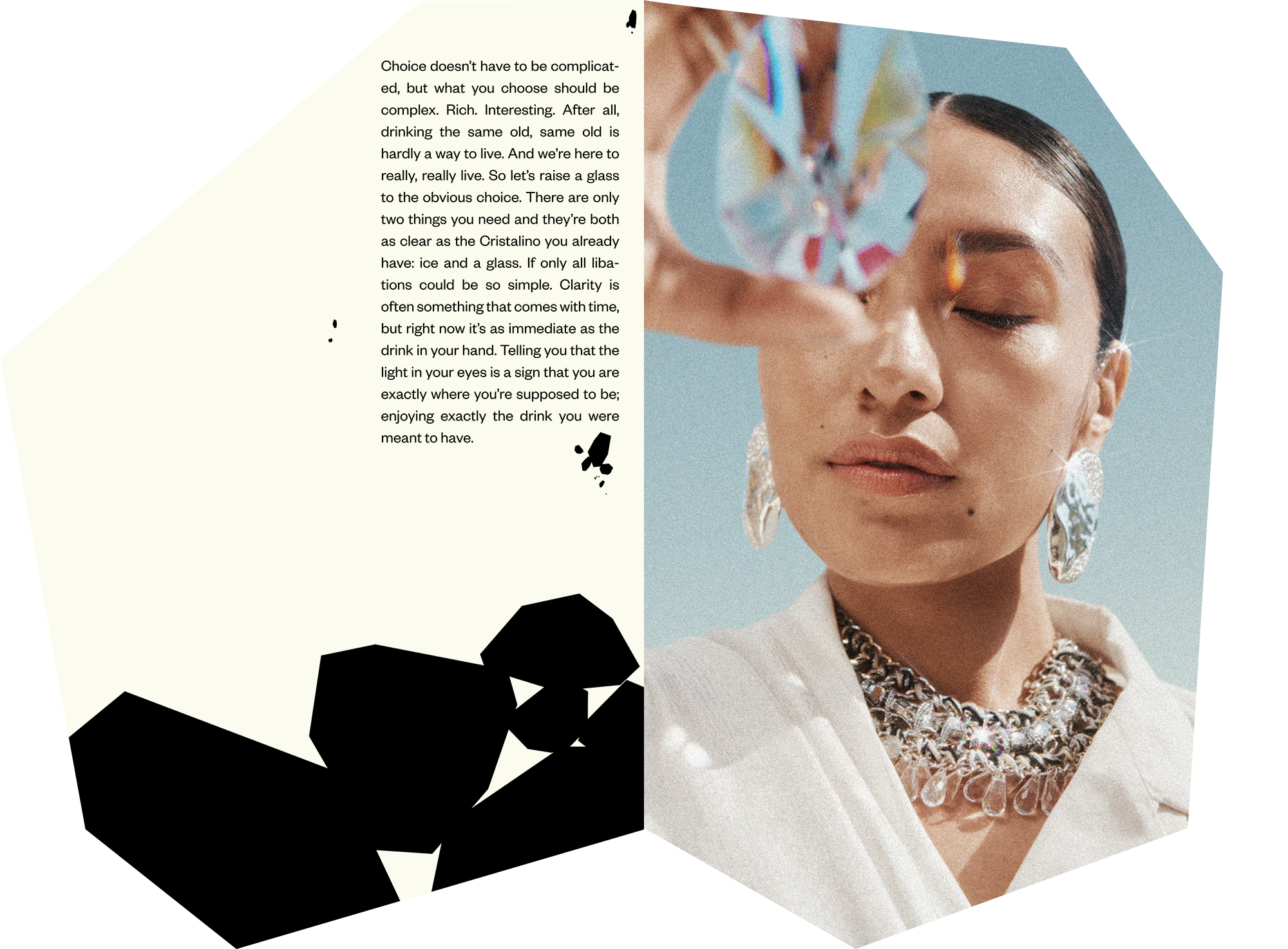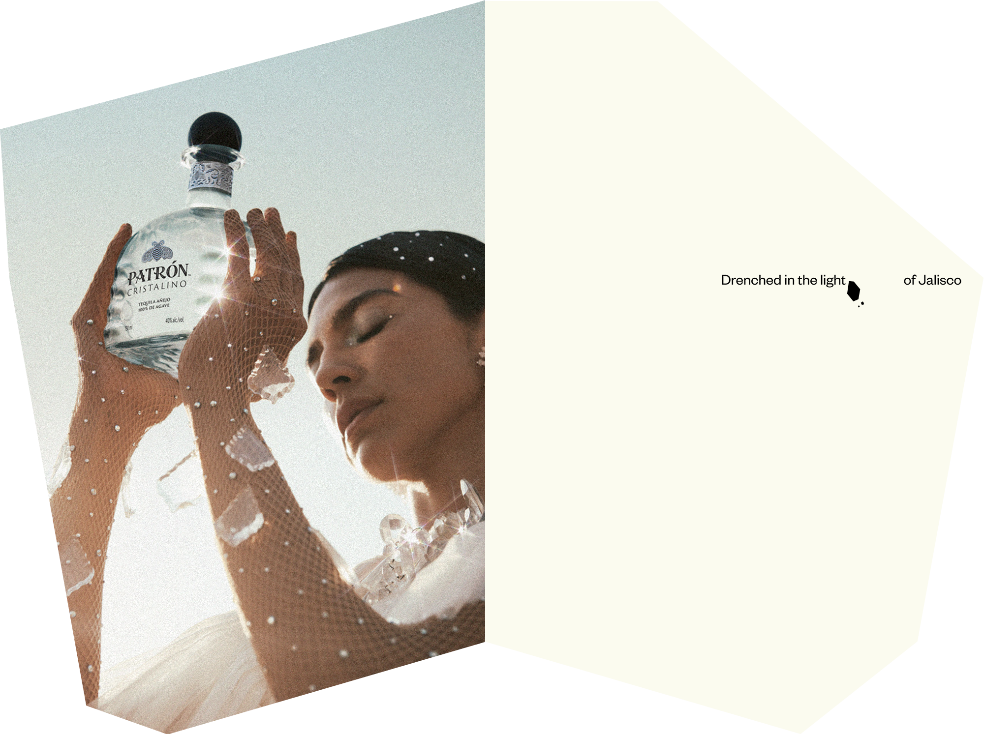 Patrón Cristalino is an Añejo tequila that has been filtered through carbon to create a crystal-clear appearance. To introduce it, we wanted to immerse viewers into a sensorial world inspired by the beauty and purity of crystal.